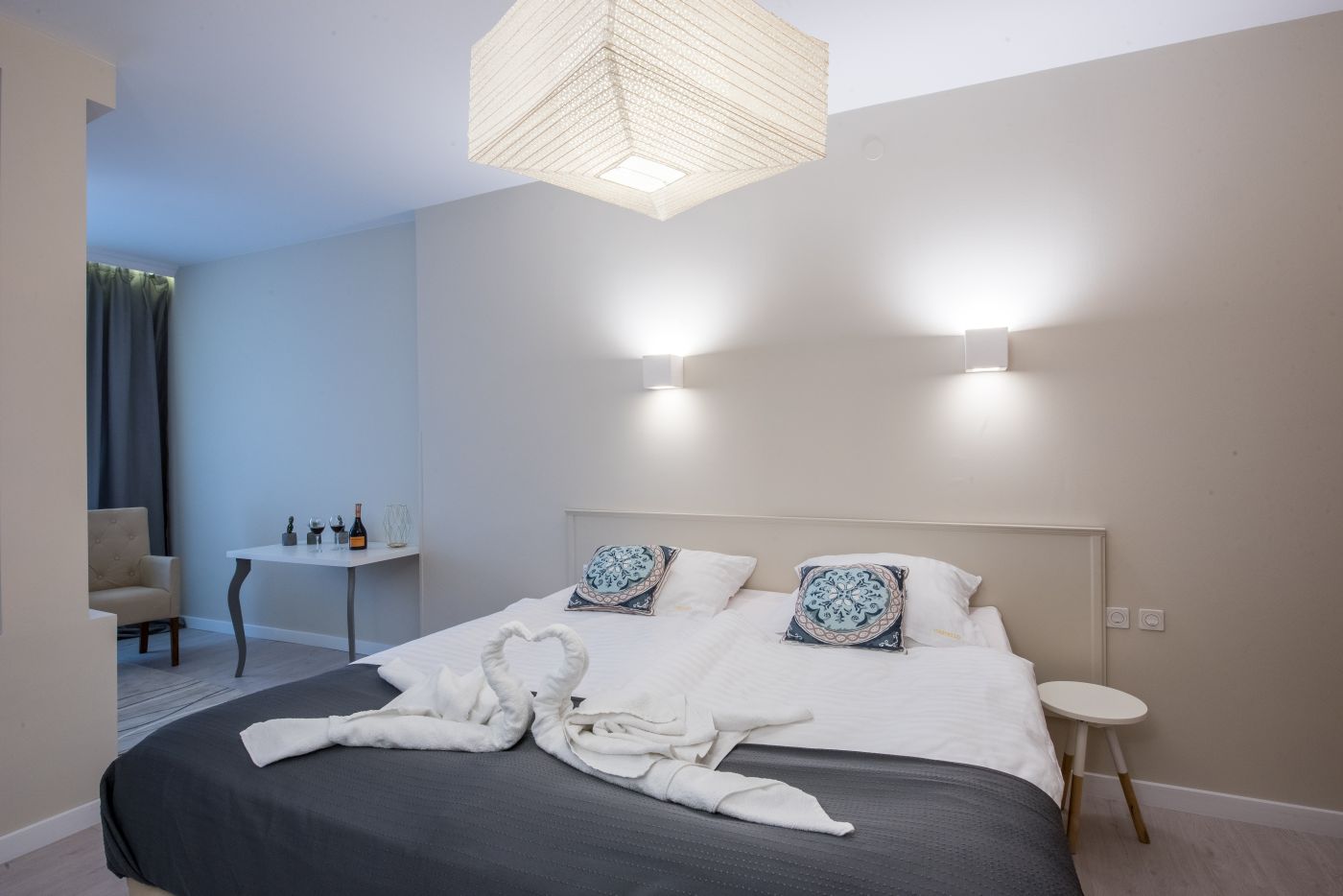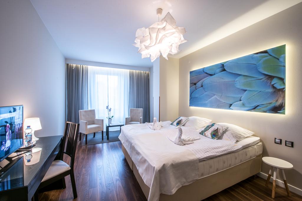 Wszystkie pokoje i apartamenty zapewniają bezpłatne Wi-Fi, płaski TV, łazienka z prysznicem, suszarka i kosmetyki hotelowe.